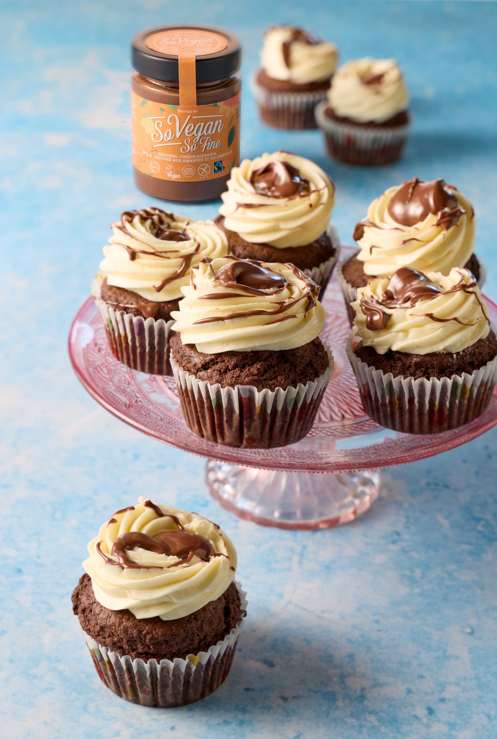 Voor ca. 12 cupcakes Bereidingstijd: 25 minuten Baktijd: 15–18 minuten Ingrediënten Voor de cake: 240 ml plantaardige melk 1 tl appelciderazijn 210…