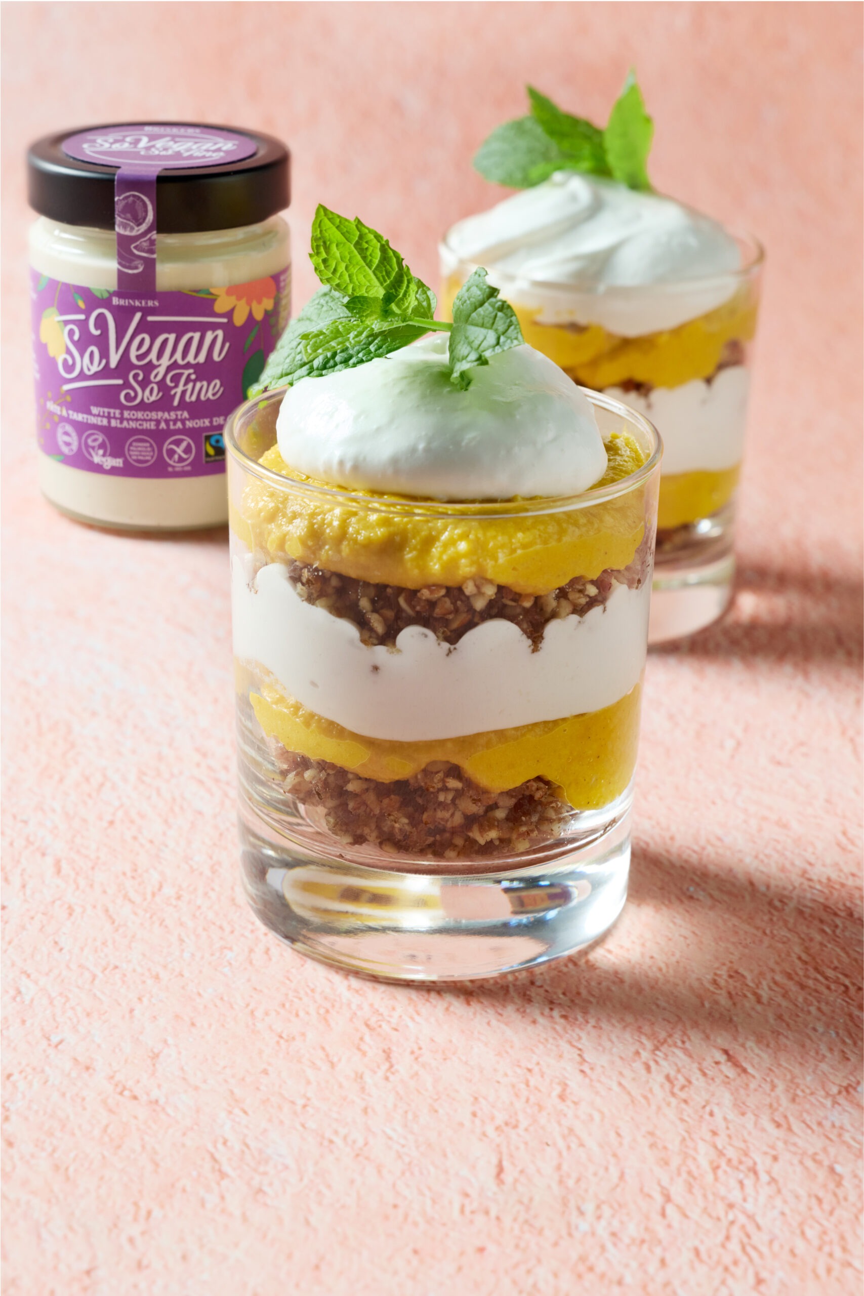 Voor 6 kleine porties Bereidingstijd: 25 minuten Koeltijd: 30 minuten (optioneel, voor stevigere lagen) Ingrediënten Voor de pecan-dadelcrumble: 100 g pecannoten 5…